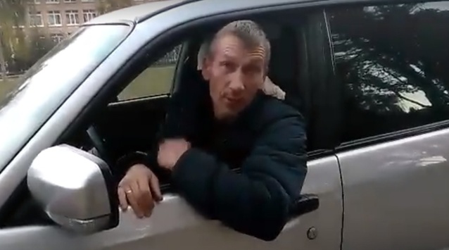 Згідно з поясненням до відео, сталося це на стадіоні 196 школи. На питання активіста хто він і що робить на машині - автохам коректно відповісти не зміг.
