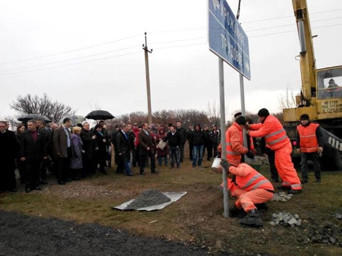 «На мероприятие съехались республиканские и местные чиновники – первую лопату бетона под установленный знак кинул спикер крымского парламента Владимир Константинов. По его словам, на полуострове заменят более четырех тысяч дорожных указателей. Пообещал – указатели на крымскотатарском появятся лишь в местах компактного проживания крымских татар», – написал он.