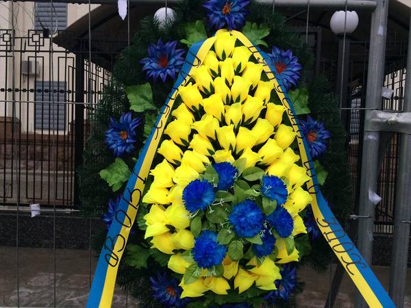 К российскому посольству принесли похоронный венок для Путина (ФОТО)