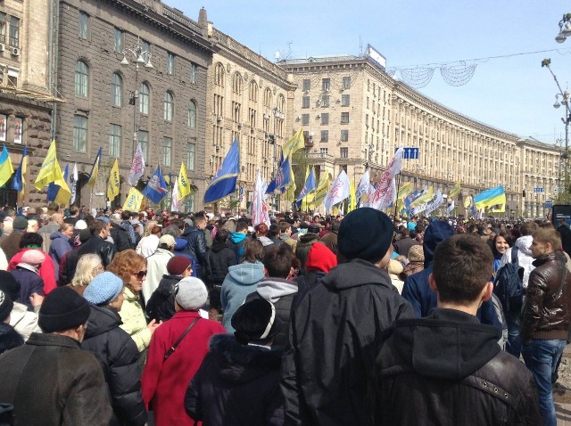 Несколько тысяч митингующих, которые стояли под стенами КГГА, сейчас вышли на проезжую часть и движутся по направлению к правительственному кварталу.