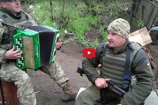 «На баяні грає психолог 2-го батальйону 53-ї бригади Роман Коноваленко. Підспівує йому командир Анатолій Штефан, заступник комбата з морально-психологічної роботи. Вони за півкроку від створення нового хіта про Путіна, який, поза сумнівом, співатимуть на всіх стадіонах України», – йдеться у повідомленні.