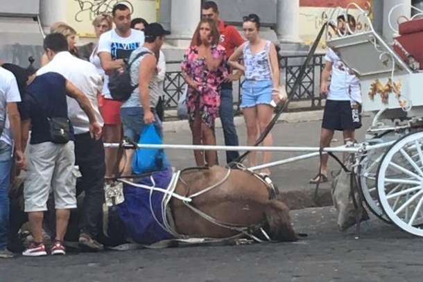 Як повідомили у відділі комунікацій Головного управління Національної поліції в Одеській області, 5 липня до поліції надійшло повідомлення про те, що в центрі міста, на вулиці Пушкінській, кінь, який тягнув карету з людьми, впав і лежить на проїжджій частині.