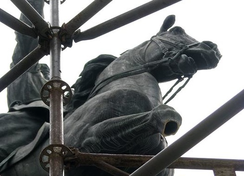 Вандали видпиляли ногу коня у пам'ятника Щорсу в столиці
