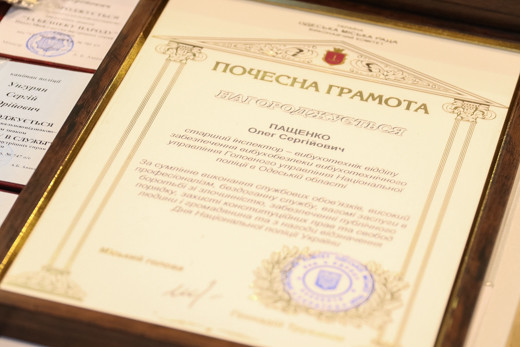 За сумлінне виконання службових обов'язків, високий професіоналізм, бездоганну службу, вагомі заслуги в боротьбі зі злочинністю, забезпеченні правопорядку та з нагоди святкування Дня Національної поліції України Почесною грамотою виконавчого комітету Одеської міської ради нагороджені:
