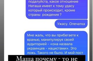 Телеведуча Маша Єфросиніна на своїй сторінці в соцмережі розмістила скріншоти повідомлень, які отримала від російської журналістки Ксенії Собчак після того, як назвала її «найбільшим розчаруванням серед російських публічних персон».