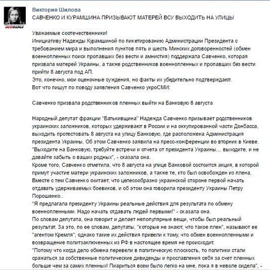 Саме Шилова і Курамшин їздили на окуповану територію України та зустрічалися там з убивцею Українського народу терористом Олександром Захарченко. Їхня зустріч була великим інформаційним ударом Кремля проти України.