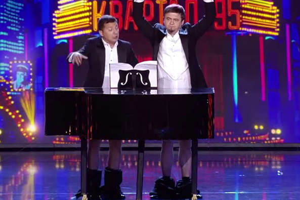 Так і грає наш піяніст – як уміє та чим уміє. Не судіть його строго – він ще такий недосвідчений. Головне, що в нього всьо палучіцца. У Москві скажуть – і він виконає.