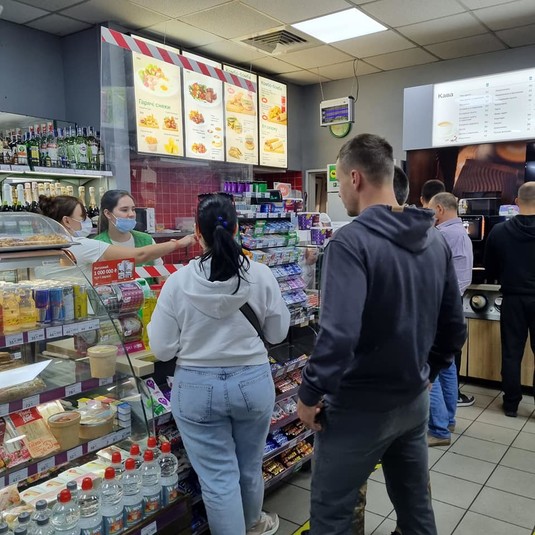Вечером возвращаемся из Житомира в Киев. Решили выпить кофе на ближайшей заправке. А сразу за Житомиром есть, как раз, сдвоенная заправка WOG. По заправке на каждой стороне дороги. Заходим. На заправке аншлаг. Люди стоят в 3 очередях на кассу, ходят по залу, стоят в очереди у кофейного автомата и в глубине зала. Но есть один любопытный момент. Кроме нас и продавцов на кассе, лишь два человека в масках. Остальные без. Подхожу к кассе и говорю: