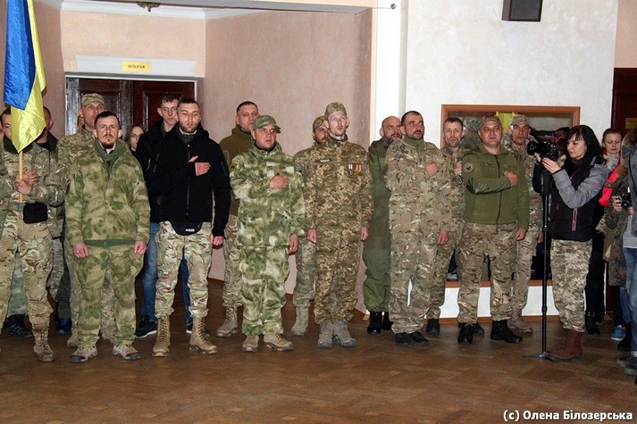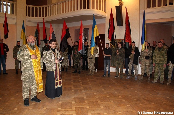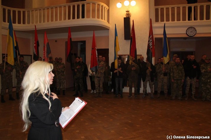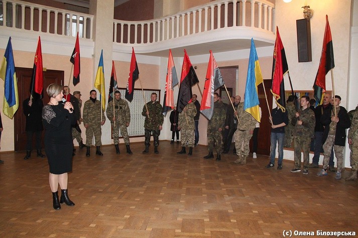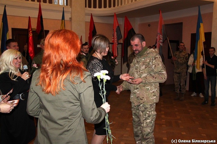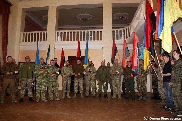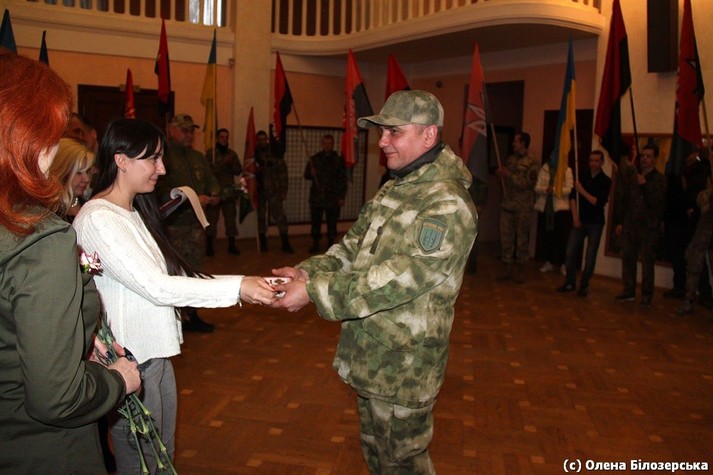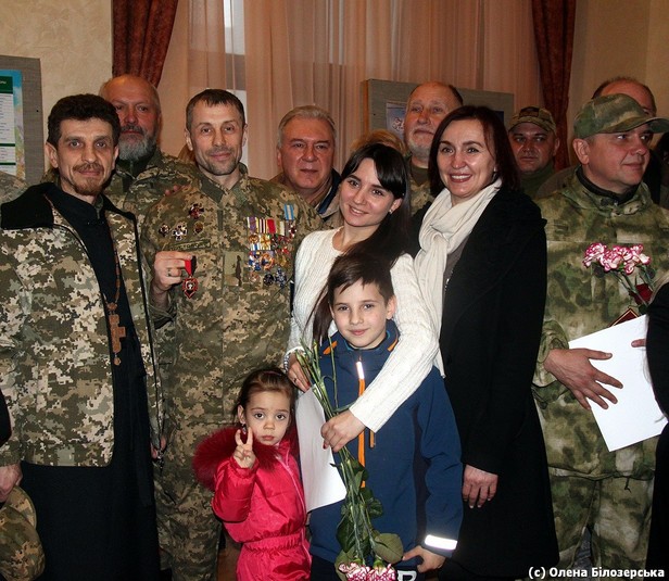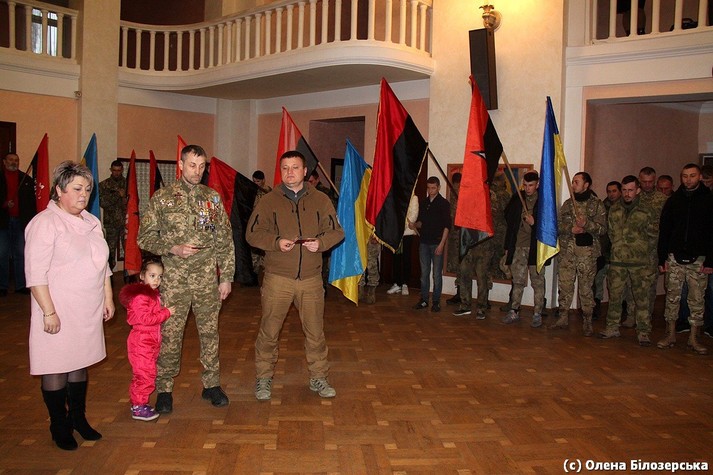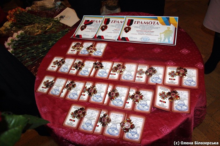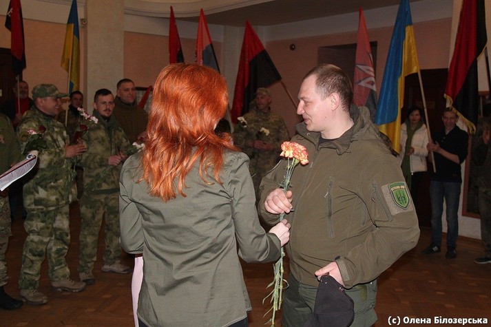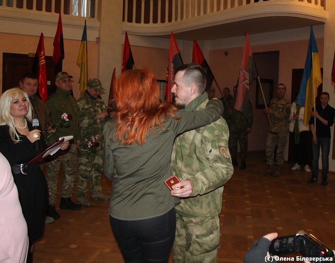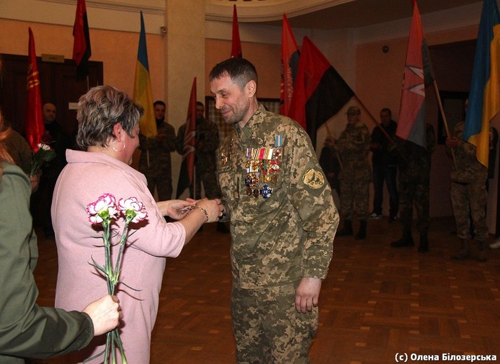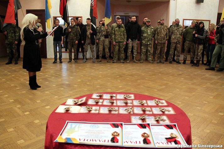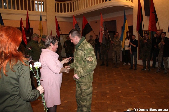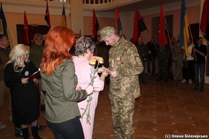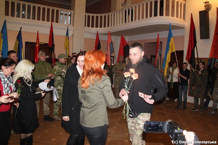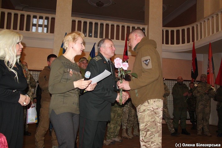 Була маленька «творча програма» - патріотична пісня від юного маріупольського барда Данила Подибайла і вірш, який прочитала місцева поетка. В кінці від всеукраїнського братства ОУН-УПА троє вояків були нагороджені медаллю «Захиснику України від московської агресії».