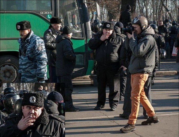 Отже, як ви думаєте, хто вчора командував Нацгвардією на Майдані? Прекрасний, підготовлений кадр. Такий собі генерал-лейтенант Миколенко. Той самий, що відповідав ще у Внутрішніх військах за ті-таки масові заходи. Ви можете бачити це чудове обличчя на фото. Він у нас – випускник Сімферопільської школи замполітів. І активно брав участь в придушенні «майданівського заколоту» – на тій самій позиції. Фоточки цього кадра докладаю. Наприклад, з сумновідомим керівником «беркуту» Косюком, який тепер втік до рашки. І там займається тим самим – б'є неугодних владі.