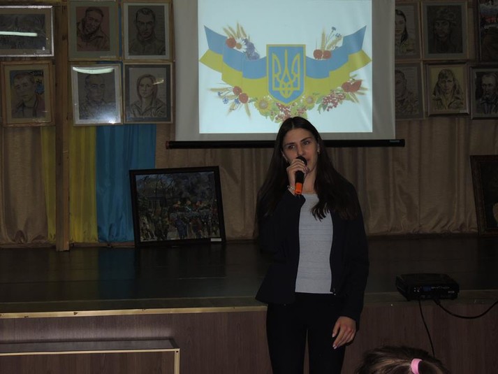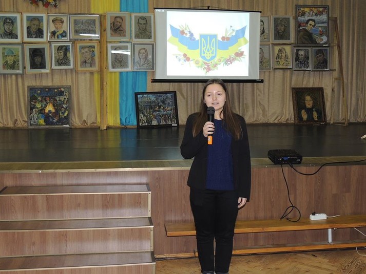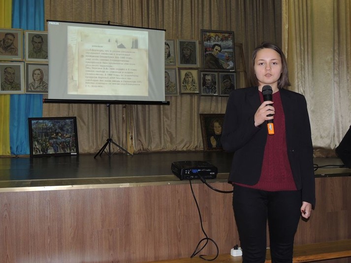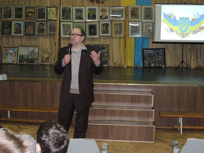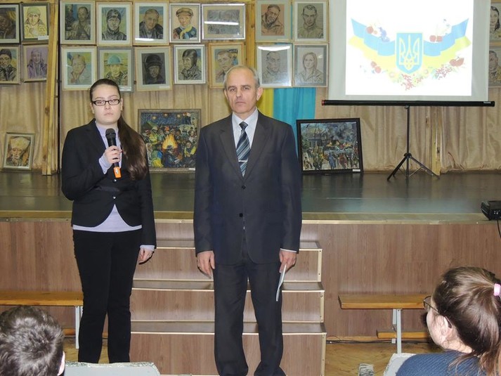 Якраз цими днями у школі проходить виставка прекрасної художниці Марини Соченко «Народжені вільними» до четвертої річниці Революції Гідности. Під пастельним портретами героїв Майдану учні старших клясів подивилися відеострічку про Вячеслава Чорновола й поговорили про відродження Української держави.