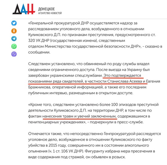 Очень важно, что в тексте мы видим отсылку к показаниям свидетелей Бражникова и Асеева – бывших узников «Изоляции». Таким образом, показания пленного украинского журналиста Станислава Асеева, написавшего об ужасах «Изоляции» целую книгу «Светлый путь», сами же боевики официально признали правдивыми. Ранее рассказы Асеева они объявляли «клеветой на республику» и «украинской пропагандой».