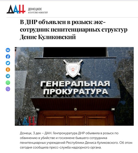А вот это настоящая сенсация! Боевики ДНР объявили в розыск главного изувера «Изоляции» Дениса Куликовского по кличке Палыч.