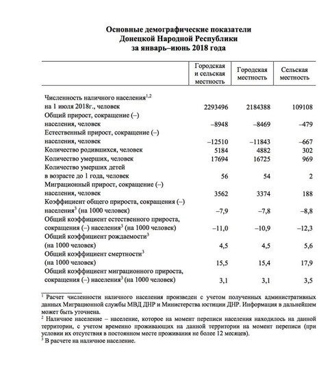 Согласно этим данным, коэффициент прироста (убыли) населения в ДНР составляет -11. Для сравнения, в Украине по последним данным этот показатель составляет -3,9. Худший показатель в мире у Болгарии -5,7.