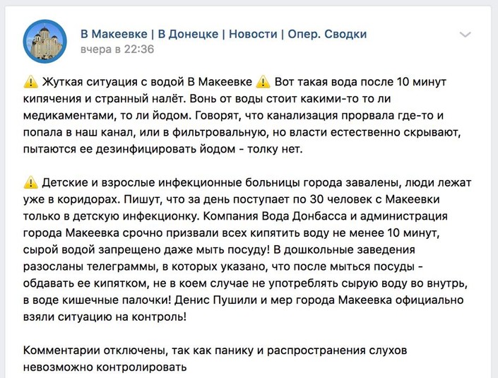 Жалобы на водопроводную воду давно уже поступают по всему ОРДЛО, так что рано или поздно подобное должно было случиться. И будет только хуже. Потому что водопроводы чинить не за что. Нет денег, нет кадров. Нормальные менеджеры разбежались, инфраструктура изнашивается, ресурсы взять неоткуда, так как инвестиций нет и не предвидится. Главным управленцем на территории поставили мелкого мошенника из МММ, который никогда ничем не руководил - один этот факт не оставляет никакой надежды.