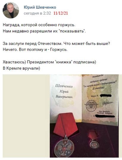 Причём, как видим, никто уже и не стесняется. Если раньше не афишировали награды от Путина за убийство украинцев, то теперь сами гордо выкладывают их в соцсети.