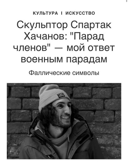 Помню, жил в Украине такой скульптор - Спартак Хачанов, который создал скандальную инсталляцию «Парад членов», оскорбившую военных, а потом, когда поднялся вал возмущения, уехал из Украины якобы из-за «преследований».