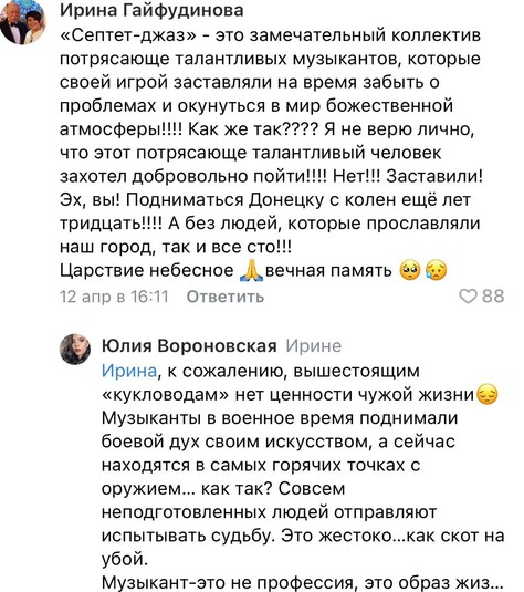 В соцсетях у людей шок, даже любители Россиюшки понимают, что музыкантов просто безжалостно отправили на мясо. Почитайте комментарии, познавательно.