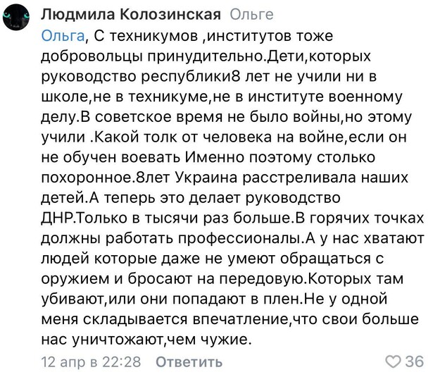 В этом месте хочется передать пламенный привет всем тем, кто ходил на «референдум» в 2014 году и требовал «республику». Надеюсь, теперь вы довольны? Все эти ужасы, разрушенные города, бессмысленная кровища – это и на вашей совести.