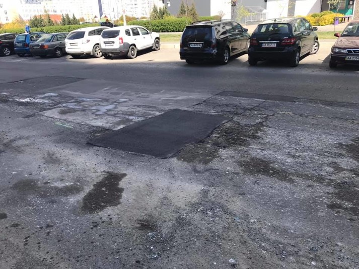 За зиму на месте прошлогодних заплат снова образовались ямы. Возмущенные жители стали писать краской на асфальте ругательства в адрес мэра, и вот теперь ямы снова заасфальтировали.