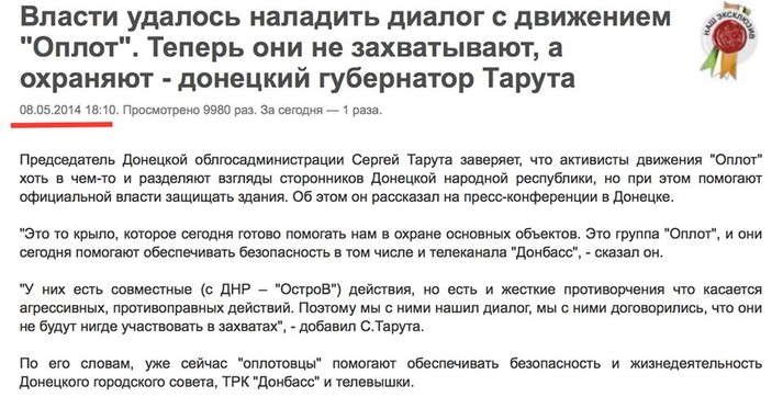 Возможно, это от того, что я прекрасно помню его коронный компромисс. 8 мая 2014, будучи губернатором Донецкой области, Тарута радостно рассказывал на своей пресс-конференции, что «Оплот» Захарченко - это на самом деле не сепаратисты, а хорошие ребята, которые пообещали помогать украинским властям и не участвовать в захвате зданий.