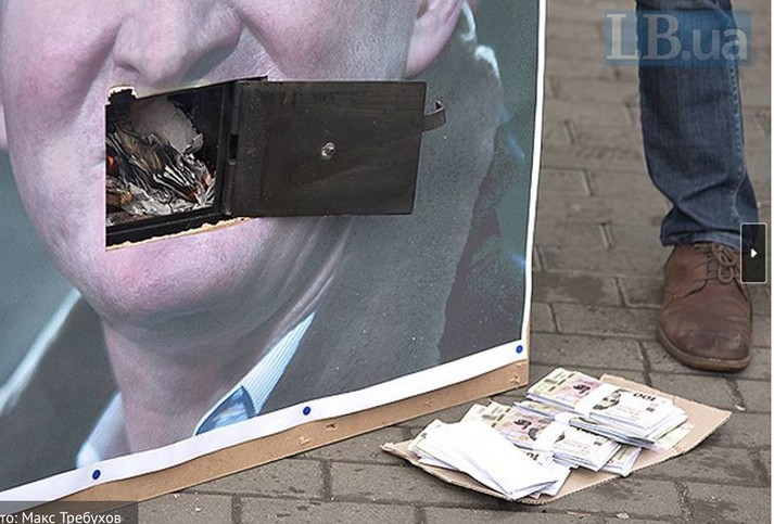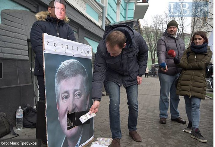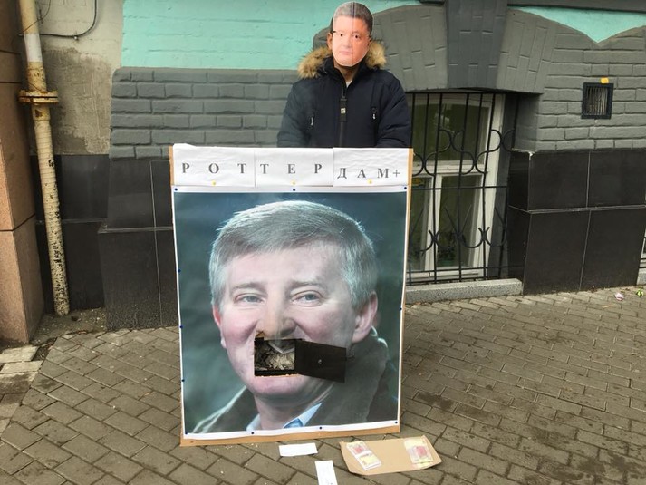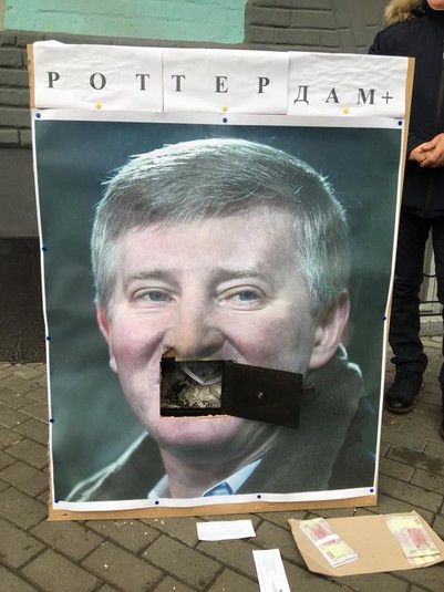 По такому случаю вместе с парнями из «Альтернативы» провели у стен компании СКМ небольшой перфоманс и показали как жерло монополии пожирает деньги украинских граждан, а власть греет на этом руки.