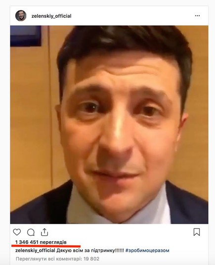 Зеленский - первый и единственный из всех украинских политиков, кто вообще может обойтись без телевизора. Охват его аудитории в соцсетях сопоставим с показателями среднего украинского телеканала. Короткий видеоблог в Инстаграме набирает по 700-800 тысяч просмотров, а отдельные видео - 1,5 млн. С такими показателями ему вообще можно не ходить на ток-шоу.