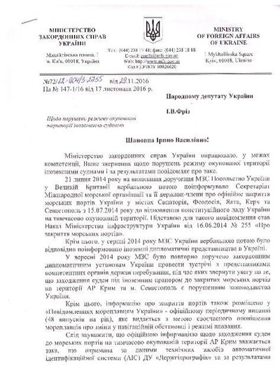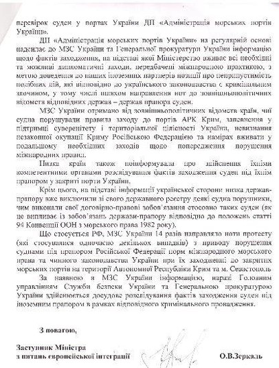 Міністерство закордонних справ також здійснило комплекс заходів: деякі держави вже виключили ці судна зі своїх реєстрів. А цe означає, що тeпeр власники судeн до яких росіяни будуть звeртатися щодо нових заходів в порти окупованого Криму добрe подумають чи огоджуватися на таку пропозицію.