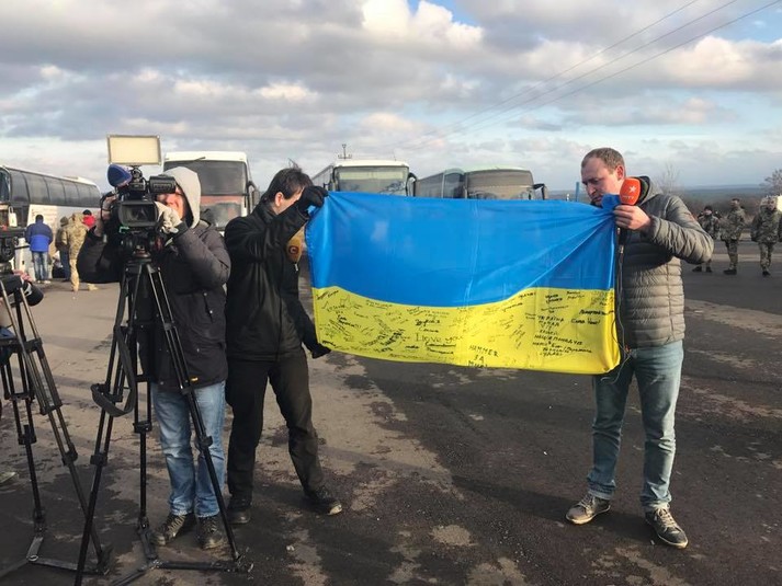 А нам вже здається, що навколо нікого. Біжу до них, ми говоримо про їх дружин і мам, дзвонить Президент, ми майже вдома. З автобусу вимагаю випустити нашу пресу, й ми спілкуємося, з НАШИМИ, ще на окупованій території. Я - з озброєними людьми в чужій формі говорю виключно українською. Й вони відповідають українською, бо Горлівка - це Україна!
