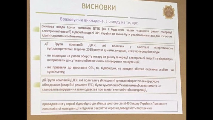 Негативного впливу компанії ДТЕК на конкуренцію не виявили, зловживання монопольним становищем не побачили.