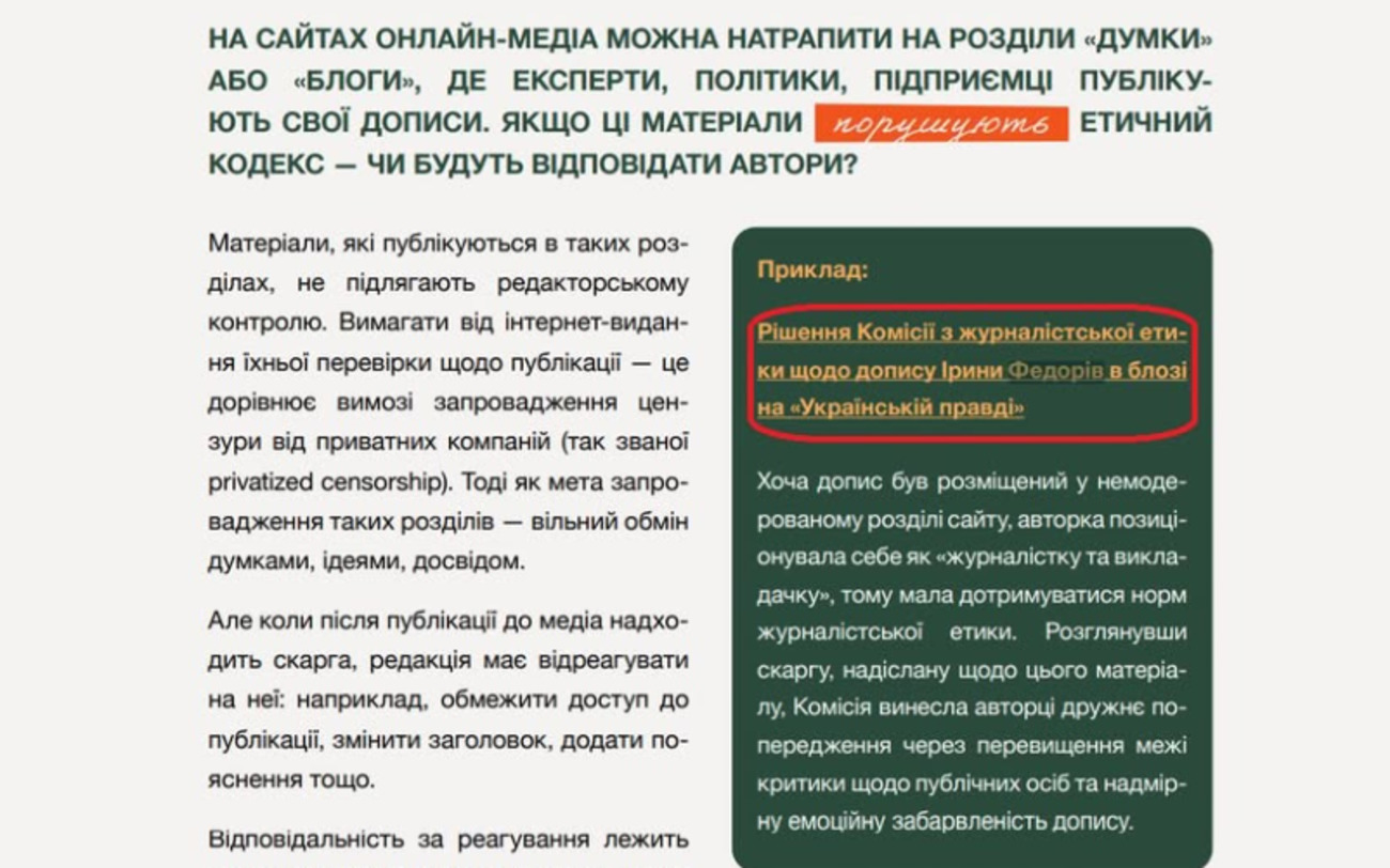 Те ж саме слід зробити і у «Практикумі», який створила Комісія журналістської етики за кошти донорів. Інформація ж має бути повною і достовірною?