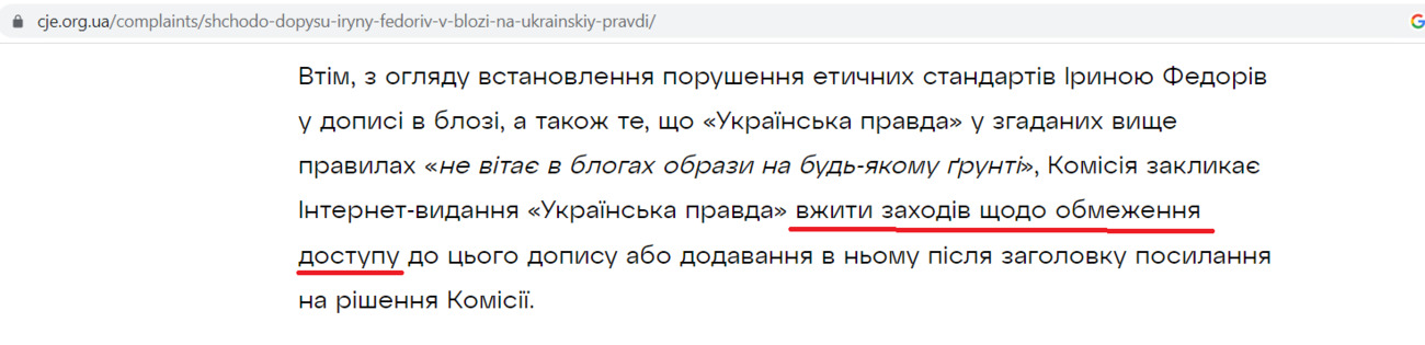 На тлі рішення суду, де чорним по білому написано, що Горобець програв, те, що написала Комісія журналістської етики у своєму висновку ще більше виглядає, як прояв цензури. Чому? Бо Комісія рекомендувала вжити заходів щодо обмеження доступу до мого допису.