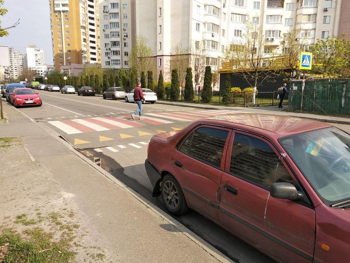 Можете ли вы визуально определить, на каком расстоянии от перехода припаркованы эти машины? Проблему решила бы нанесенная на бровку разметка. Но ее нет.