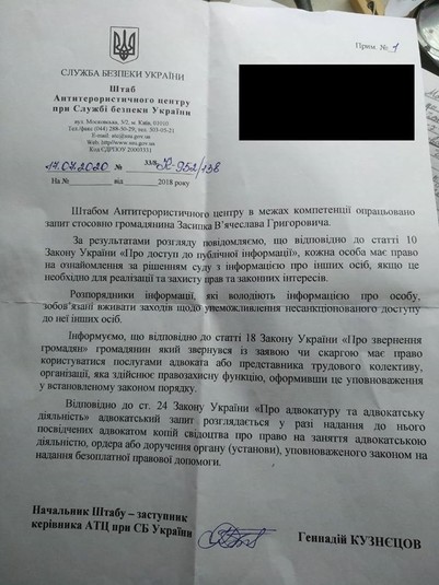 Полюбуйтеся, як на подальші наші звернення СБУ штампує відвертий ctrl C – ctrl V з випадкових абзаців тексту, щоб формально надати відповідь, але нічого не сказати по суті – бо казати службістам дійсно немає чого. З відповіддю можна ознайомитися на другому фото.