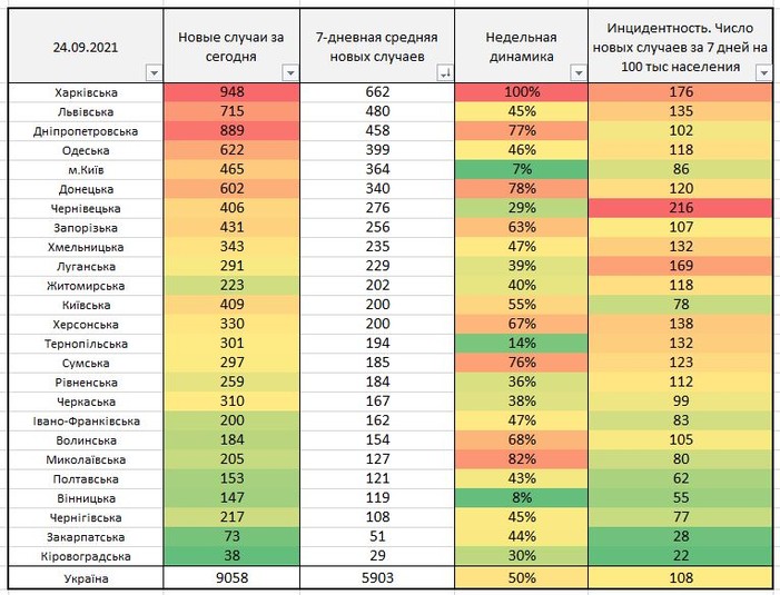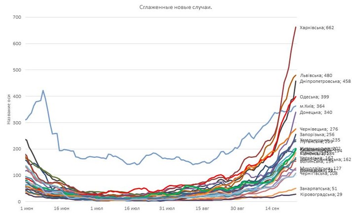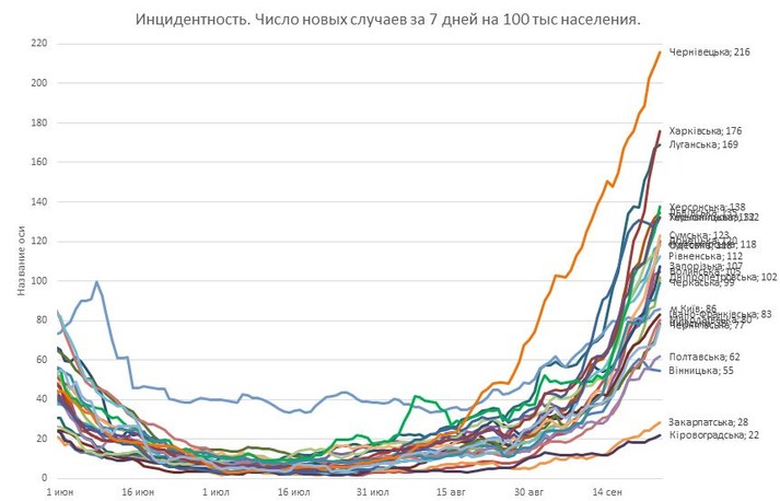 Посмотрите на Харьковскую область, помимо того что она на первом месте, так там еще и рост +100% за неделю.