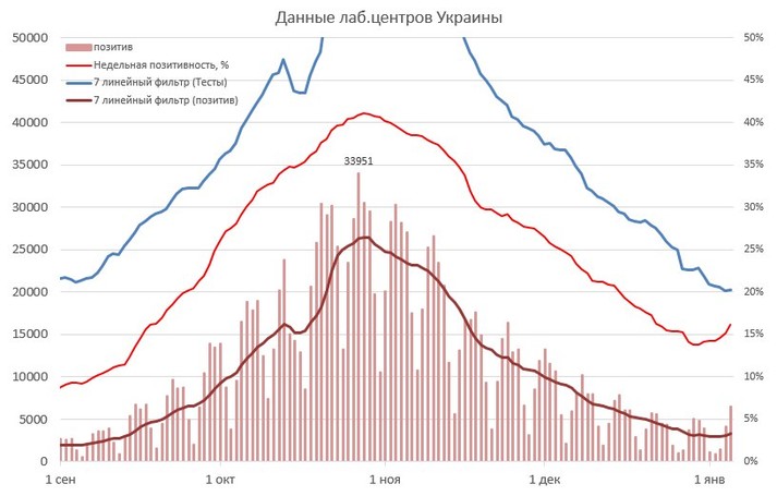 Всех поздравляю с Омикроном. Недельная средняя позитивных тестов вчера перешла к росту и составила +4% за неделю Вчера было проведено 32 812 теста, из них 6474 оказались позитивными. Суточная позитивность 19,7%, недельная 16,1%