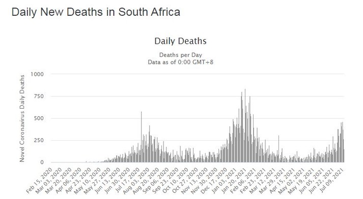 Южная Африка. В данный момент проходит третью волну смертности. Население 60 млн человек. В день до 500 официальных смертей от Ковида. И там уже не южноафриканский вариант, а индийская Дельта . Да, это удивительно, Дельта вытеснила местный вариант.