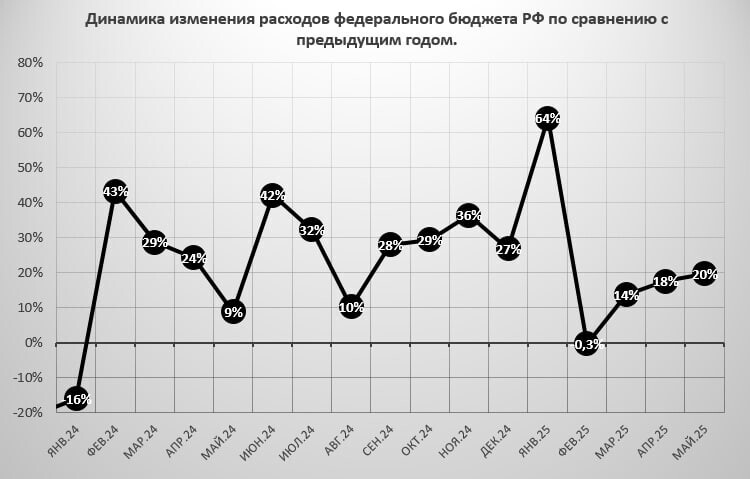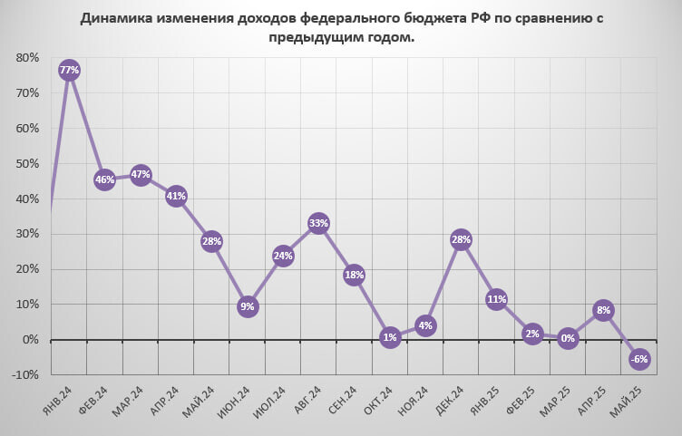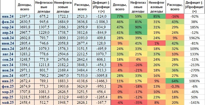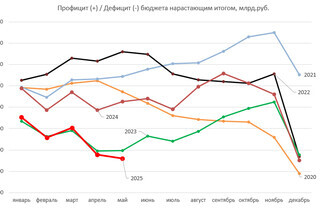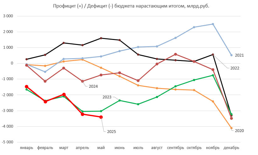 Дефіцит. У травні дефіцит становив 167,7 млрд руб. Примітно, що травень у них завжди був профіцитним останні 5 років.