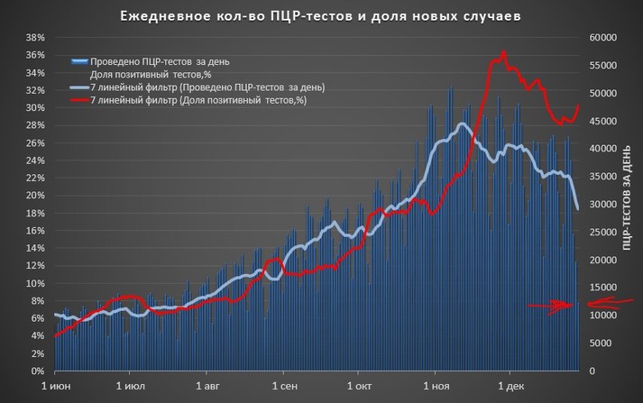 Правда тестов сделали всего 12,2 тыс, но это же не важно. Главное что падает число новых случаев. Недельная следняя опустилась до 29 тыс . Это почти 75 тыс как обещал Степанов. Ну совсем чуть-чуть недотянули. Каких-то 46 тыс не хватает.