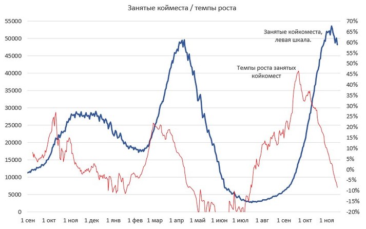 Динамика заполнения койкомест за последние 7 дней составила освобождение 640 коек в сутки