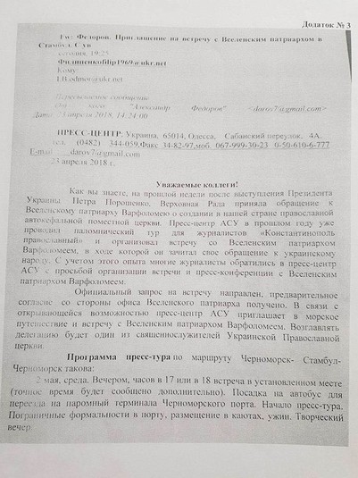 А читателям - презент. Те, кто пишет о церкви, или может быть еще напишет, сохраните для истории, коллеги. Это не письмо, это просто сеанс саморазоблачения. Знаете с какой мотивировкой собирали пресс-тур в Константинополь буквально через неделю после информации о возможности Томоса? «В связи с обращением Президента и Верховной Рады в Константинополь». Организатор не забывает уточнить, что в прошлом году мы, мол, так удачно съездили (когда по следам визита переврали слова святейшего все российские медиа), что уже сейчас куча людей рвется поехать снова. И тут все есть в программе визита. И вы бы, дорогие одесситы, сумели меня убедить, что в этот раз просто хотели поболтать и обсудить действия президента его Всесвятостью, если б я в прошлом году на этом самом компе после прошлого визита «одесских то ли паломников то ли журналистов» не отправляла Святейшему письмо опровержение с сотней подписей киевских журналистов.
