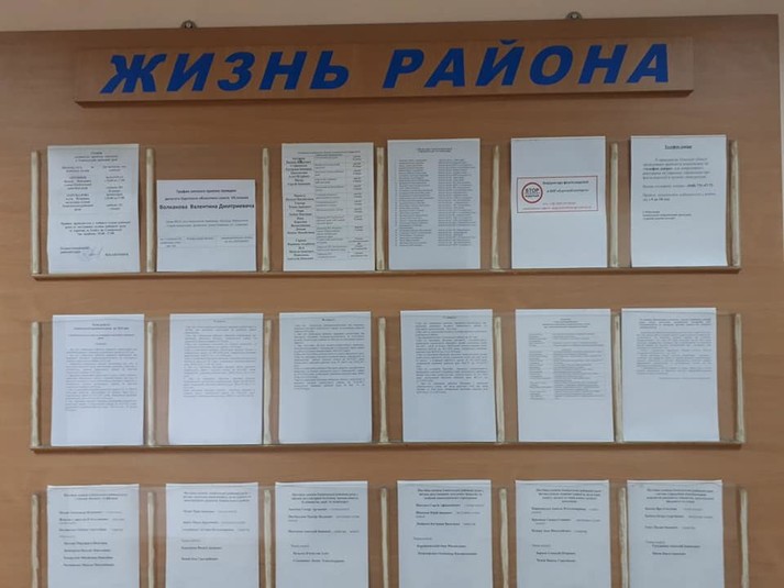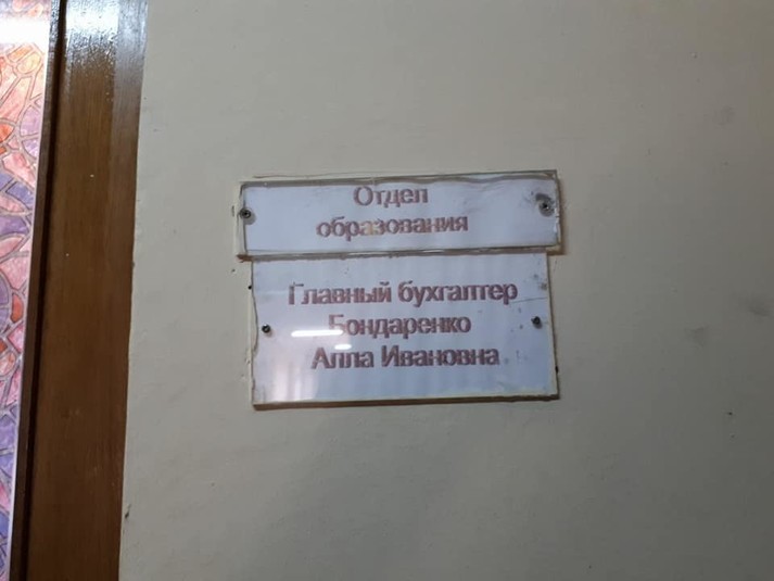 Над головою в керівниці висить карта України, український герб. Нащо вони там? Бо так сказали. Бо є таке розпорядження повісити у всіх адміністраціях.