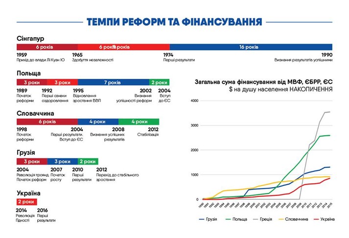 Жодній країні світу не доводилося проводити реформи в таких стресових умовах. За два роки Україні вдалося на шляху реформування зробити те, на що іншим державам знадобилося 5, 10 і навіть 15 років. Досить згадати, в який важкій ситуації наша країна була всього два роки тому. Військова агресія, анексія Криму, диверсії і теракти, небоєздатність армії, параліч правоохоронної системи, тотальна корупція, втрата п'ятої частини ВВП, розбалансована і знекровлена фінансова система, катастрофічні економічні показники. Насправді за цей час ми зробили більше, ніж може здатися. Але звичайно, менше, ніж хотілося б.
