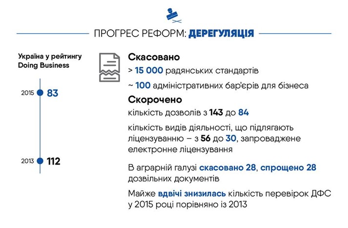 - Дерегуляція: кількість бюрократичних перепон для відкриття і ведення бізнесу скоротилася в рази.