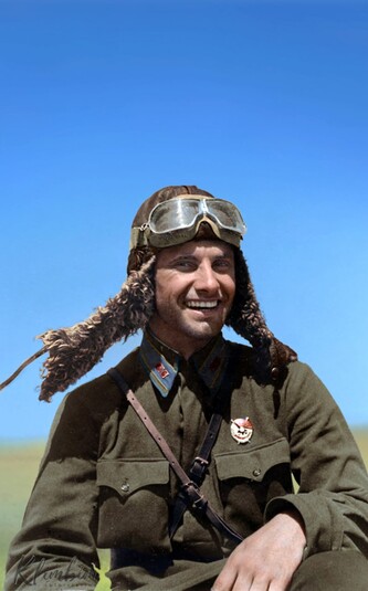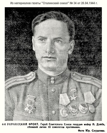На фото Герой Советского Союза Петро Дзюба. Именно его фото россияне развесили по всей стране с пропагандой «1945-2022». Он был летчиком, лично сбил 15 самолетов.
