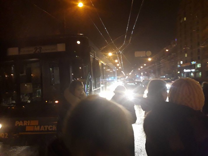 23-й ехал полупустой. Не успели отъехать и 30 метров от здания института - слетели штанги. Пані-водительница вышла. Долго возилась: минуты три. Вдруг стук и крик женщин в троллейбусе. Первые 20 секунд ничего не понимаю - опять тихо, за окном темно. Пассажиры закрыты в троллейбусе. Под фарами останавливающихся машин разглядел: фольксваген сбил водительницу, когда та возвращалась в троллейбус.