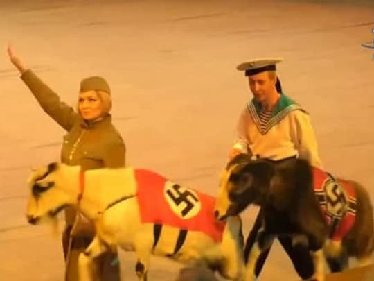 Справжнє «свято перемоги». У російському цирку мавп і козлів одягнули у форму зі свастикою