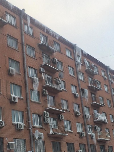 Сучасні бетонні коробки відрізняються від старих будівель тим, що на них немає кованих балконів, різних архітектурних прикрас тощо. Відповідно на них немає взимку... БУРУЛЬОК!