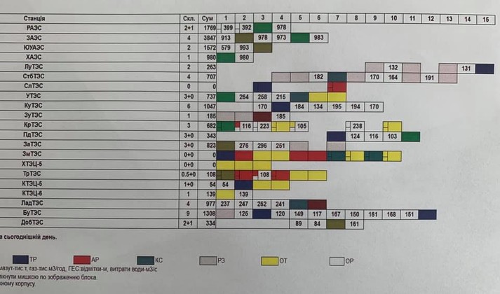 На першому графіку ви можете побачити поточний стан енергоблоків. Білі клітинки з цифрами - блоки в роботі. Сірі - в резерві. Темні - блоки або на консервації, або в планових ремонтах. Саме цікаве - жовте та червоне. Жовте - немає палива. Червоне - аварійний ремонт. На двох ТЕС Центренерго блоки, що працюють на газовій групі, поламалися геть зовсім. Одночасно. Вугілля на них є. Хочу нагадати, що у вже далекому 2014 році одночасний вихід в аварійний ремонт великої кількості блоків електростанцій, що належать ДТЕК, призвів до масових непередбачуваних відключень по всій країні. Тоді АМКУ не знайшов доказів, які б спростували виключно технологічний характер одночасної надзвичайної аварійності електростанцій ДТЕКу. Побачимо, чи знайде у випадку з Центренерго, відповідне клопотання до АМКУ ми також негайно відправили, бо відмова від виробництва - це одна з ознак зловживання монопольним становищем. Аварійний блок неможливо підняти диспетчерською командою з Укренерго - на то він і аварійний. Для покриття дефіциту потужності, що утворився через Центренерго, зараз додатково включаємо блоки Криворізької ТЕС, і на її складі вугілля залишилося на 5 днів. На Луганці є ще на місяць, але поставок немає. Коли криворізька ТЕС зупиниться, дефіцит потужності може сягнути 1000 мвт. А це - необхідність відключення/обмеження споживання для 6% всіх споживачів країни.
