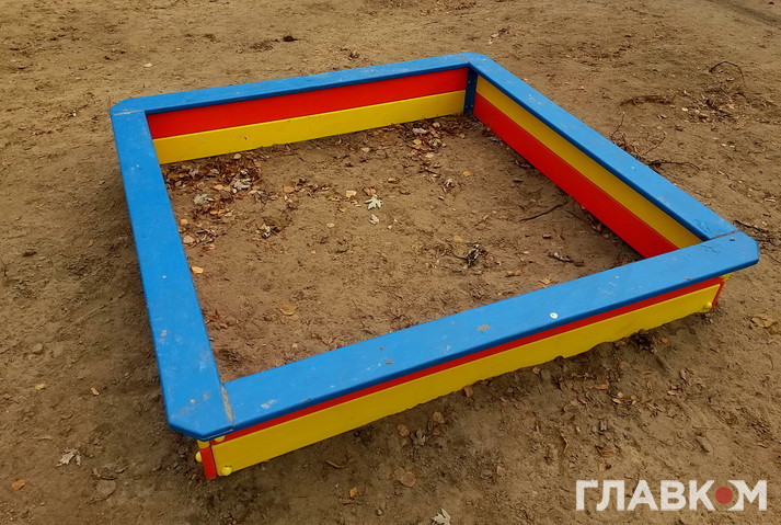 Його історія тягнеться з часів останніх виборів. За рік він уже встиг зарости травою. Залишилась стара гірка, спускатись якою просто небезпечно. Обладнання для гімнастичних вправ похилилось – скоро впаде. Пісок, певно, розтягнули місцеві, а може його й узагалі не було...